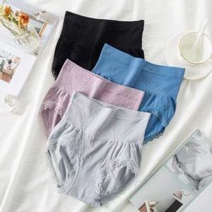 Fashionable Classic Solid Color Women’s Underwear, Lace Trim Comfortable Seamless Mid-High Waist Triangle Panties 34